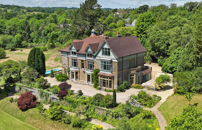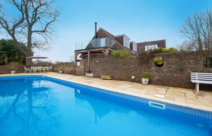 Modern Victorian style holiday house near Southampton that sleeps 16 in 8 bedrooms, with 4 studios and a lodge to sleep an extra 10 guests (charged per person for a minimum 2 night stay). Large grounds, indoor pool, hot tub, steam room, games room, and BBQ lodge. 2 cots (age 2 yrs and under). Sorry, no pets. NB: Due to planning restrictions this property is only suitable for gatherings of families, couples or corporate groups.