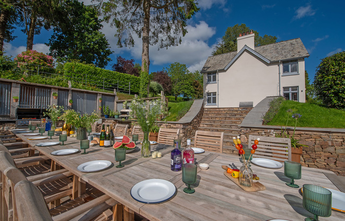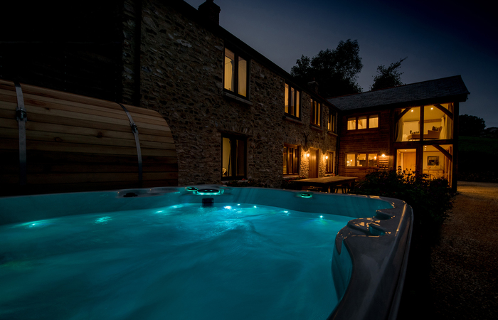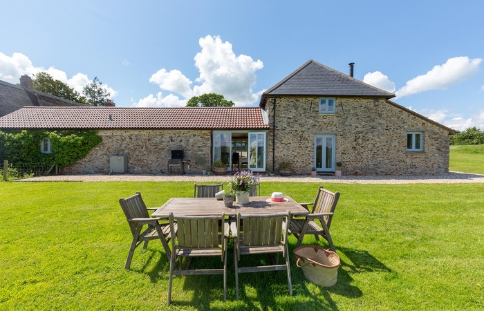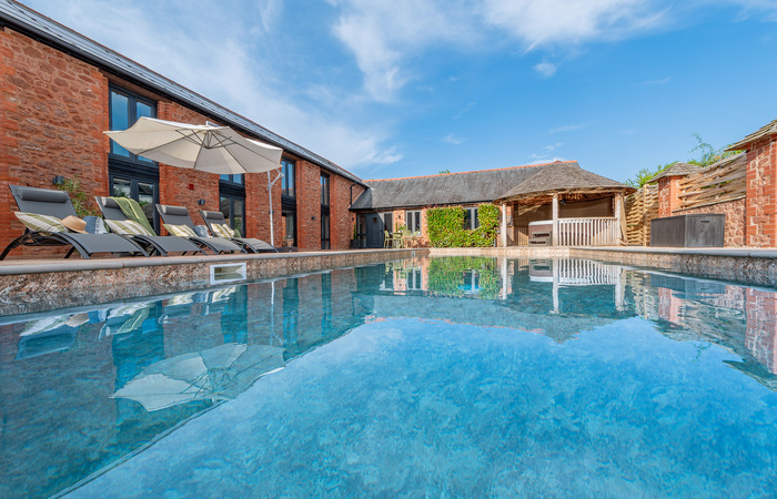 Barn conversion in the Blackdown Hills in Devon. Sleeps 10 in 5 bedrooms and has a year-round hot tub and Nordic style BBQ lodge. Outdoor heated pool available Apr-Oct (used occasionally by the owners - charges apply for exclusive use) 1 cot (age 2 yrs and under). Sorry, no pets.