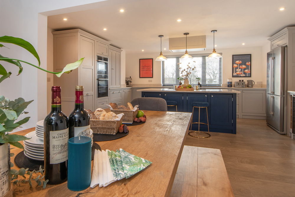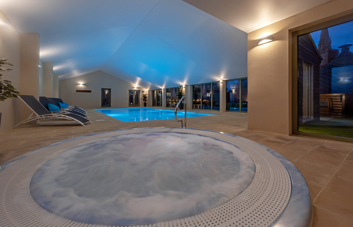 Characterfully converted stables on a private estate in Wiltshire, just a short drive from Bath. Sleeps 14 in 7 ensuite bedrooms, there's an indoor pool with a built-in swim spa and hot tub, a sauna, a games room, movie room and outdoor table tennis. 2 cots (age 2 yrs and under). 2 dogs welcome (small charge per pet).