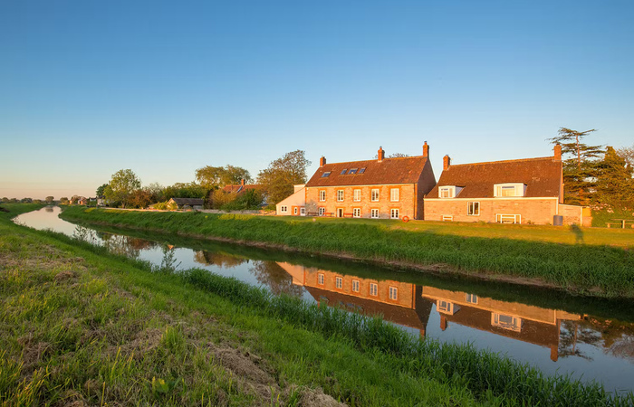 Modern house with a private riverside setting on the Somerset Levels. 6 bedrooms sleep 12 + 1 child aged 16 years or under at no extra charge, there’s a swim spa and games room with a pool table, table tennis and table football. 2 cots (age 2 yrs and under). 2 dogs welcome (small charge per pet).