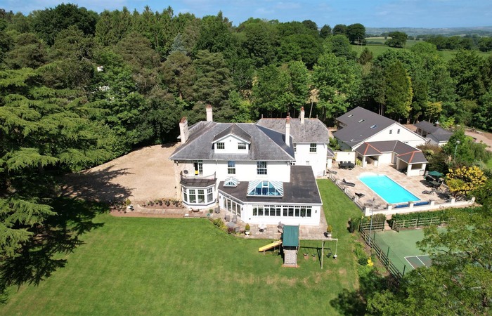 Beautiful country house tucked away in a very private setting not far from Wellington on the Somerset/Devon border. Sleeps 14 +2 in 7 bedrooms, has an outdoor heated pool (Apr-Oct), indoor swim spa, sauna, games room, children’s play area and tennis court. 1 cot (age 2 yrs and under). 1 dog welcome (small charge).
