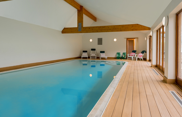 Luxury holiday lodge in Somerset sleeping 12 in 6 ensuite bedrooms, with room for 2 more beds at an extra charge per person. There’s a private indoor pool and sauna, a hot tub, games room, BBQ lodge and children’s play area. 2 cots (age 2 yrs and under). 2 dogs welcome (small charge per pet).