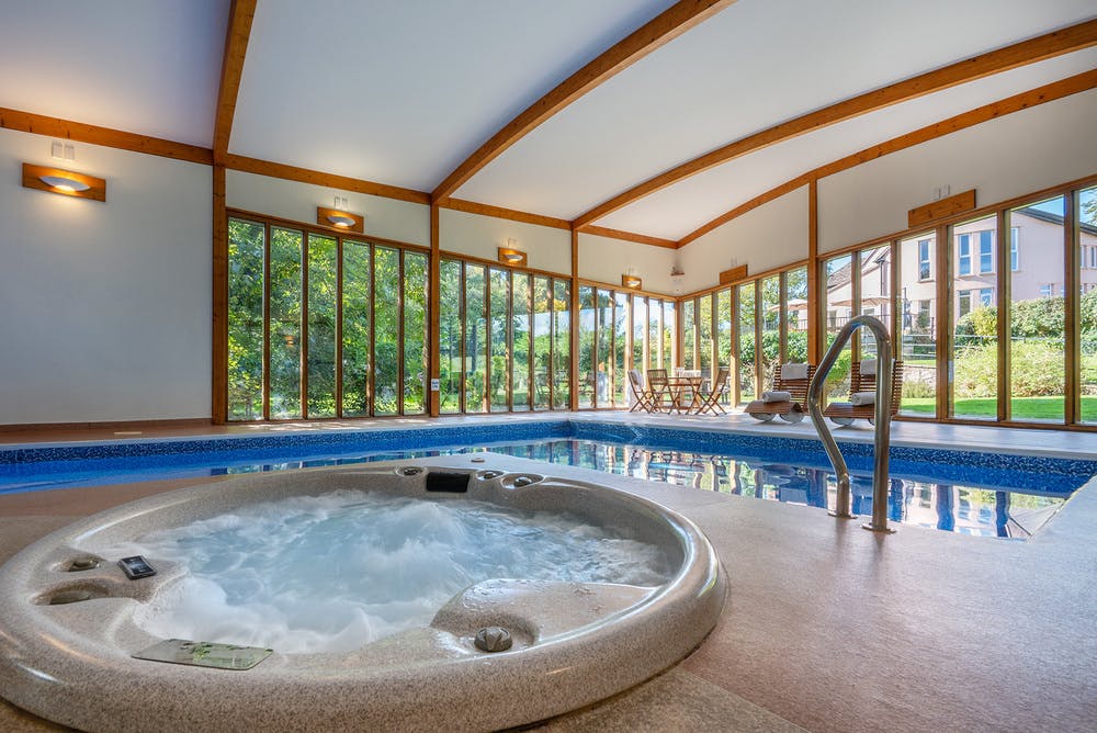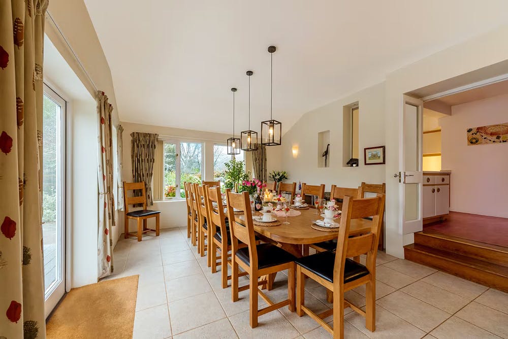 The accommodation is spread over 2 gorgeous neighbouring houses that come with oodles of homeliness and all the creature comforts you could need. 10 bedrooms sleep 20 guests, 7 of them are ensuite, and there’s room for 3 extra guest beds at an additional charge each. There are welcoming living spaces, well-equipped kitchens, a covered games area, and wait for it, wait for it – A PRIVATE SPA HALL WITH A HEATED POOL, HOT TUB AND SAUNA!