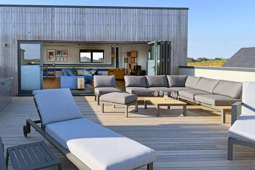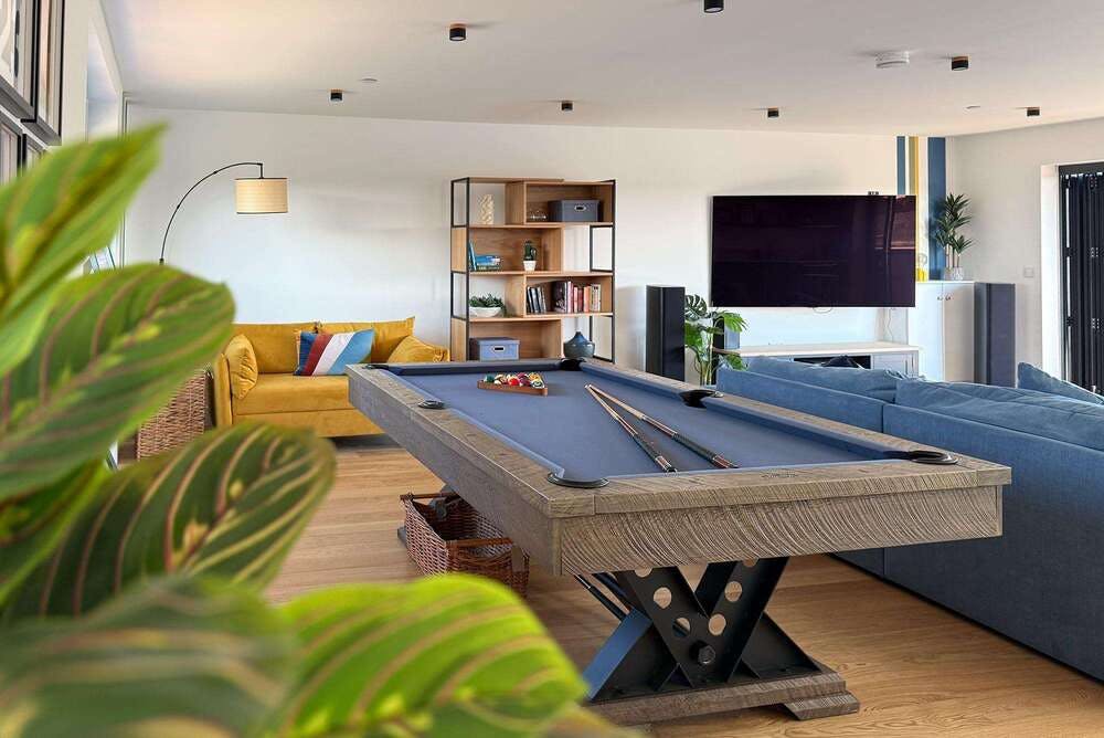 This is a house that comes with style, substance and sustainability, so all the ticks. 5 bedrooms and a sofa bed in the games room sleep 14 guests, there’s a big open plan living space where you can gather and get your big happy on, and it’s all finished to a high spec. The feels are so restful – we love how the house is filled with natural light, falling softly in through the floor to ceiling glass walls; well chosen interiors add to the unruffled vibe.