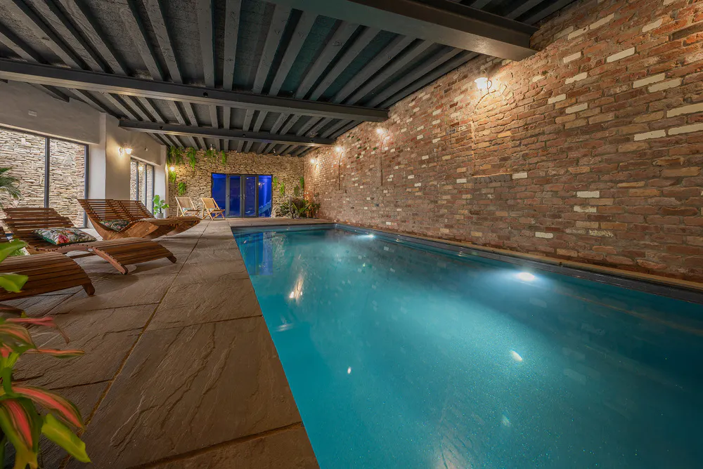 Oh, how we love spreading exciting news like this! With snooze space for 26, Boogie Barn in Nottinghamshire was already an amazing place to stay for large group holidays in the UK, but it’s just got even better, with the addition of a stunning indoor heated pool and sauna. Exclusively yours, along with 13 ensuite bedrooms, a huge retro-style games room, 2 hot tubs, and a mini nightclub.