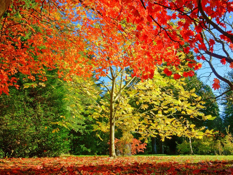 This year the autumn colours are even more amazing than usual, and there’s a reason for that. That long hot summer we all enjoyed meant that the trees produced more sugar in their leaves, and consequently more anthocyanins, so the reddy colours become more vibrant as the days grow shorter and they stop producing the chlorpyhll that makes the leaves green in the spring and summer. In a nutshell, that’s the science. And the predicted combination of warm daytime temperatures and cool, dry nights means the colours will be more vivid and last longer than in other years.