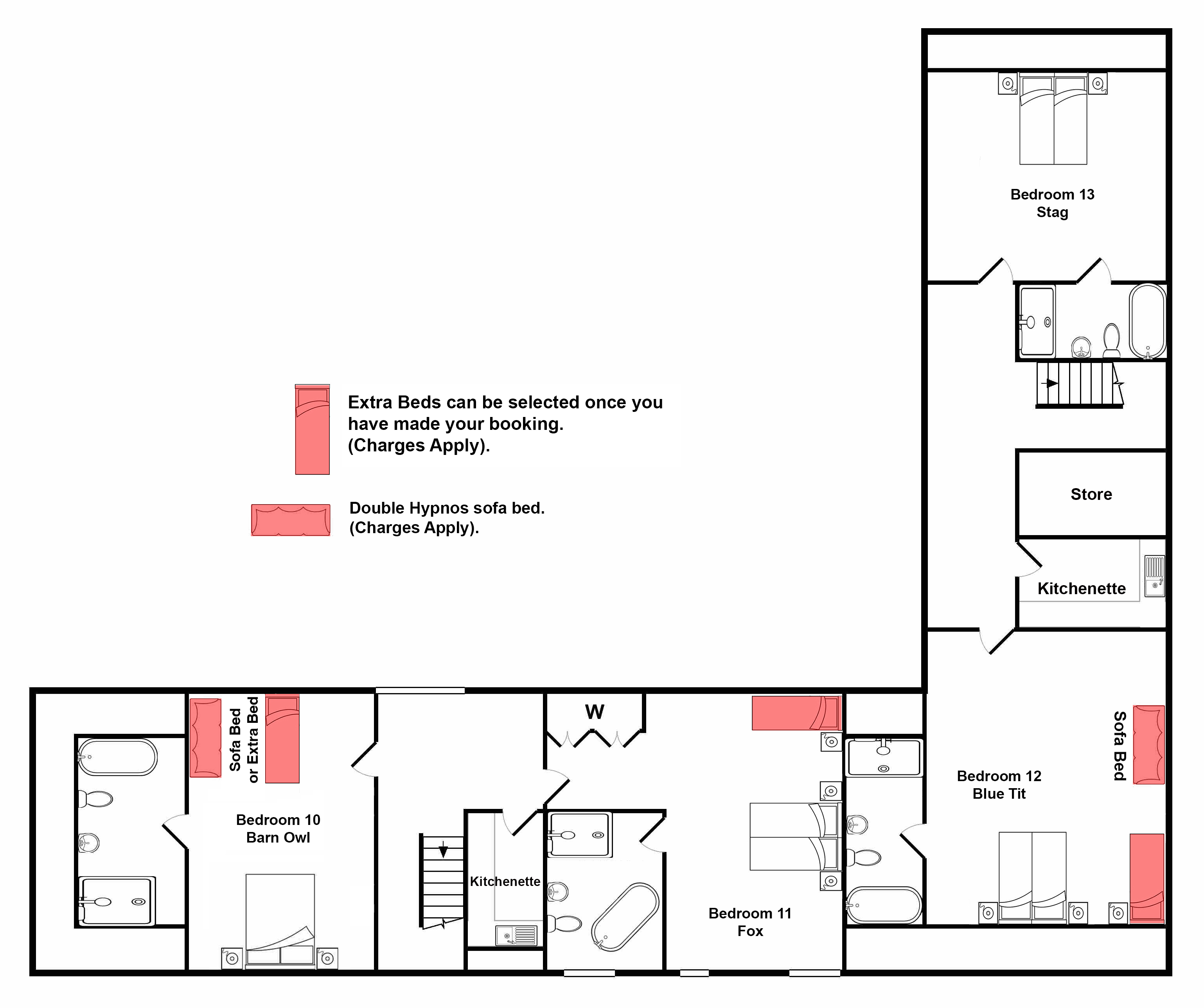 Optional: 1 extra guest bed or a sofa bed (a comfortable Hypnos double) at an extra charge per person (extra charge - see our Extras page).