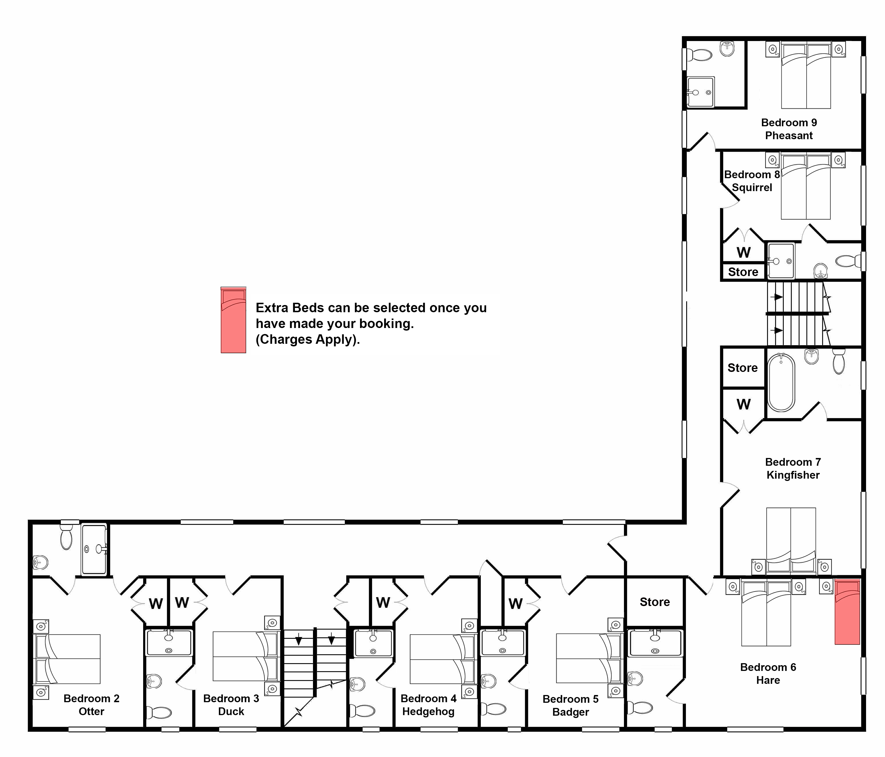 Croftview - Bedroom 10 (Barn Owl) is a second floor room with options for extra guest beds Bedroom 10 (Barn Owl)
