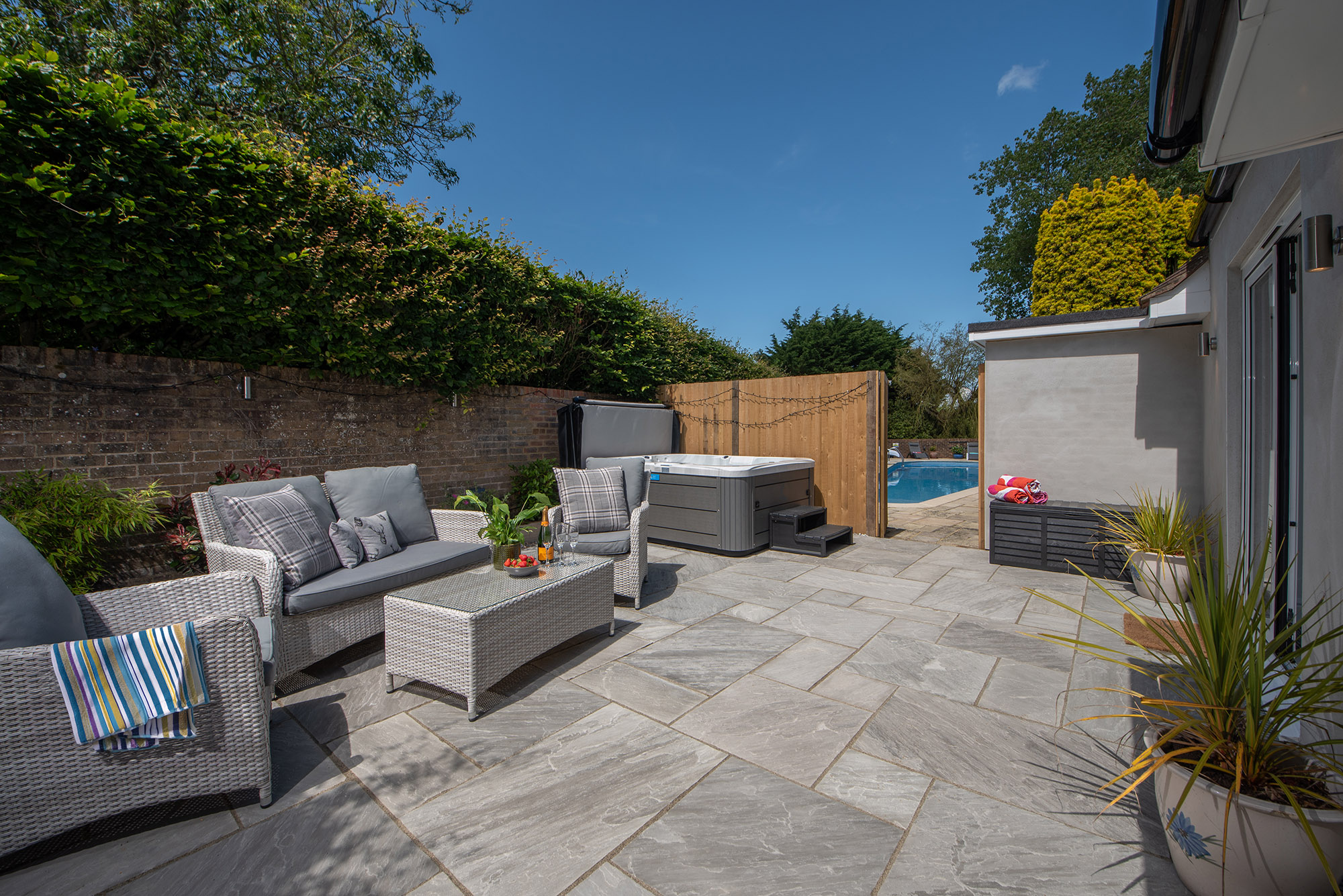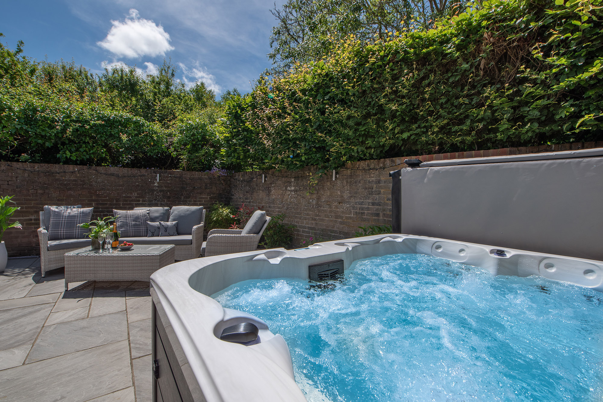 Dawdledown: Unwind in the annexe courtyard with a soak in the hot tub, also accessed from the garden -