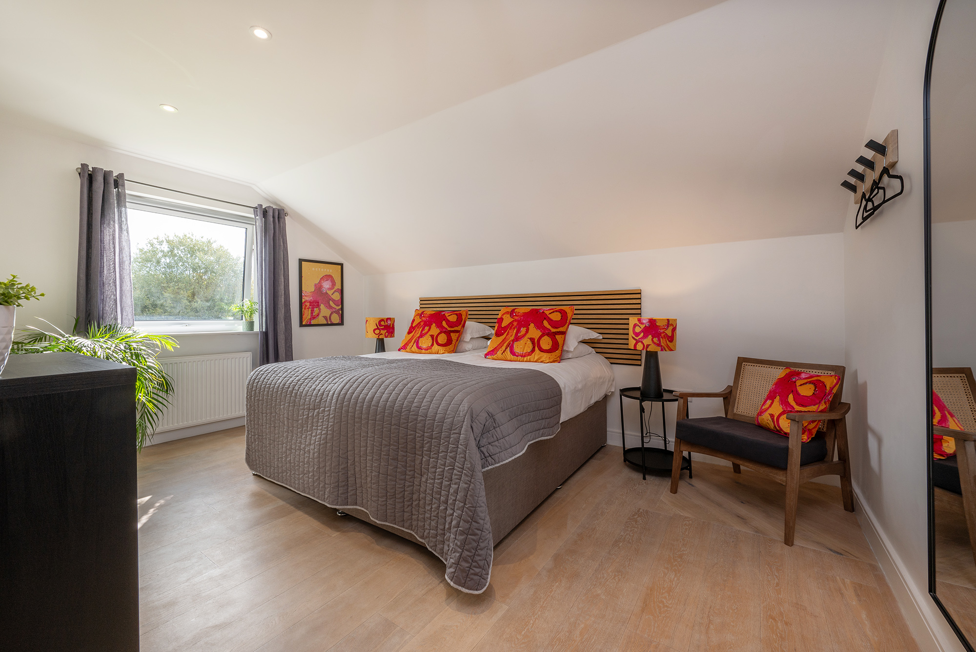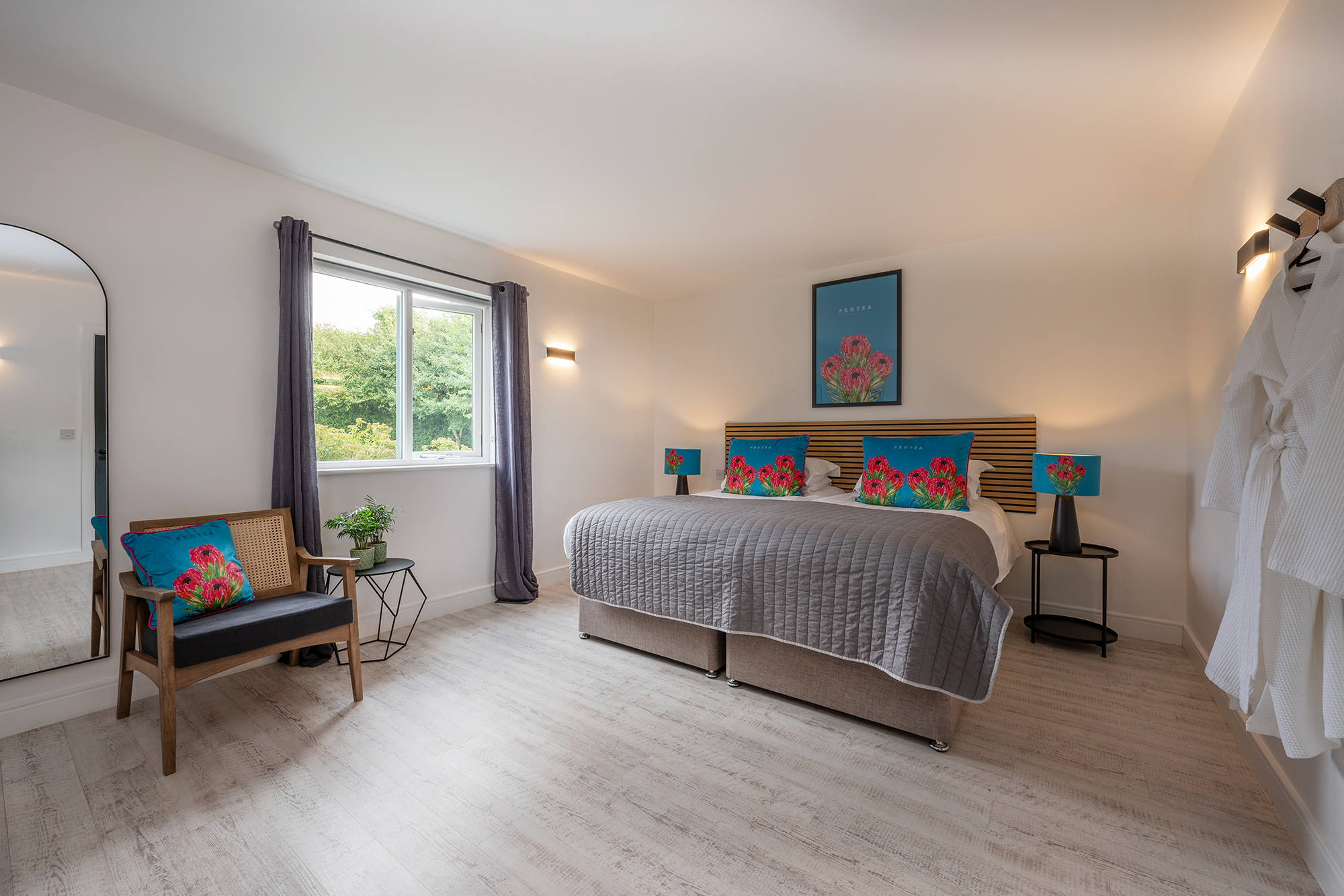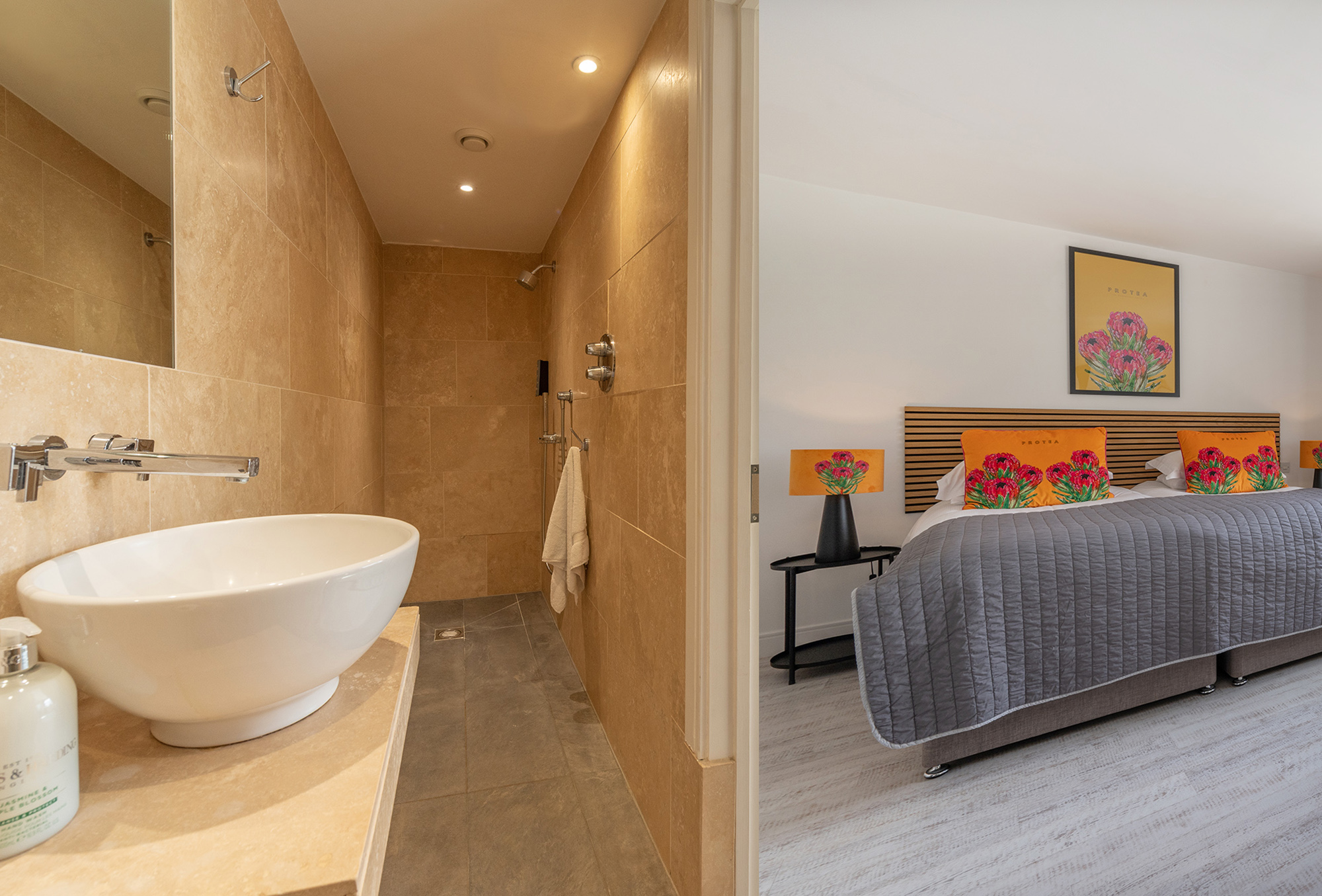 Fuzzy Orchard - Bedroom 1: Access friendly on the ground floor, zip and link beds (super king or twin) and an ensuite wet room -