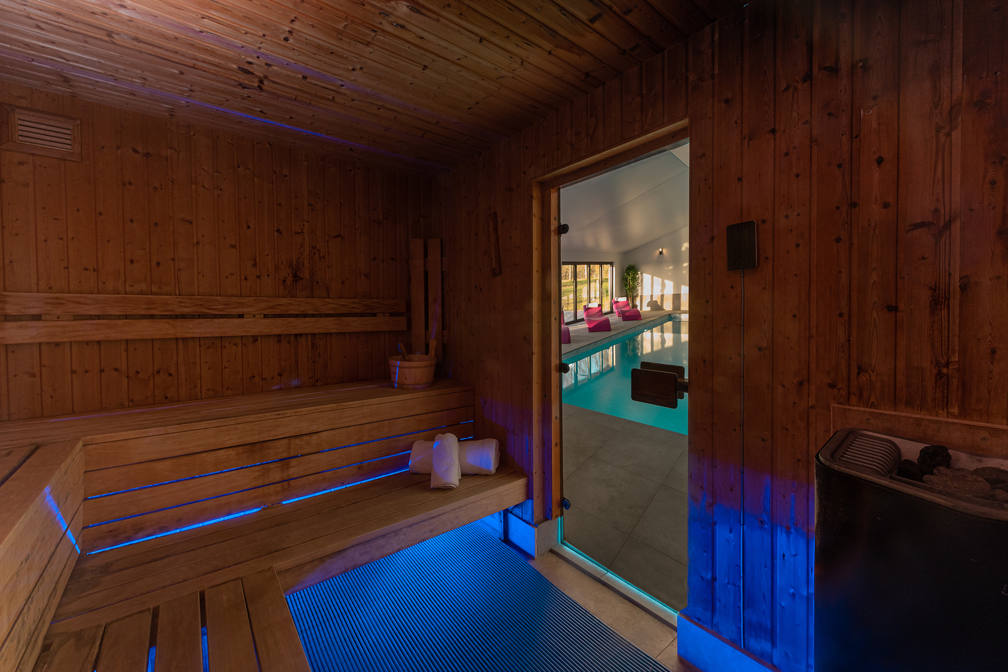 Fuzzy Orchard - The sauna is to one end of the pool hall -