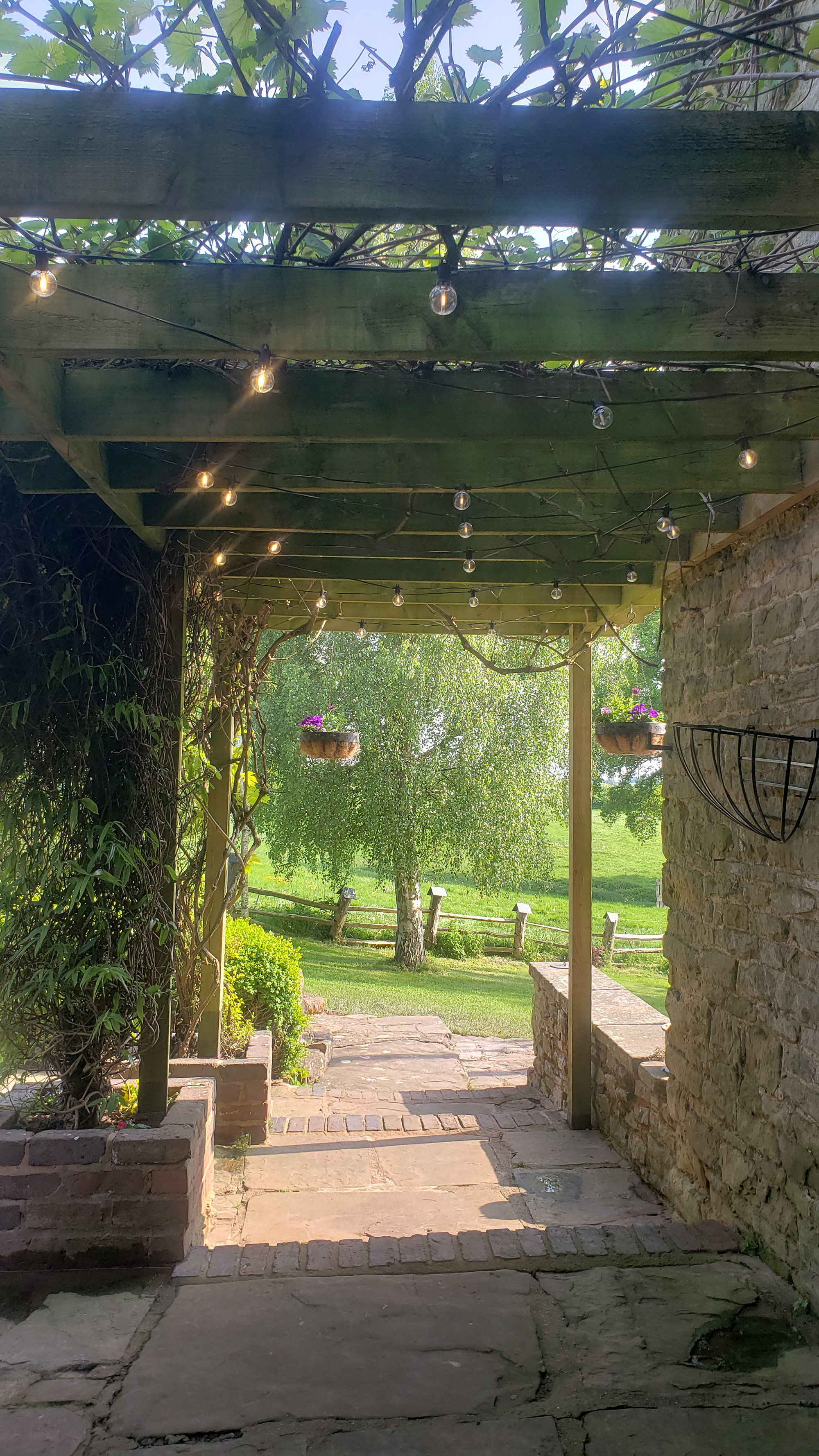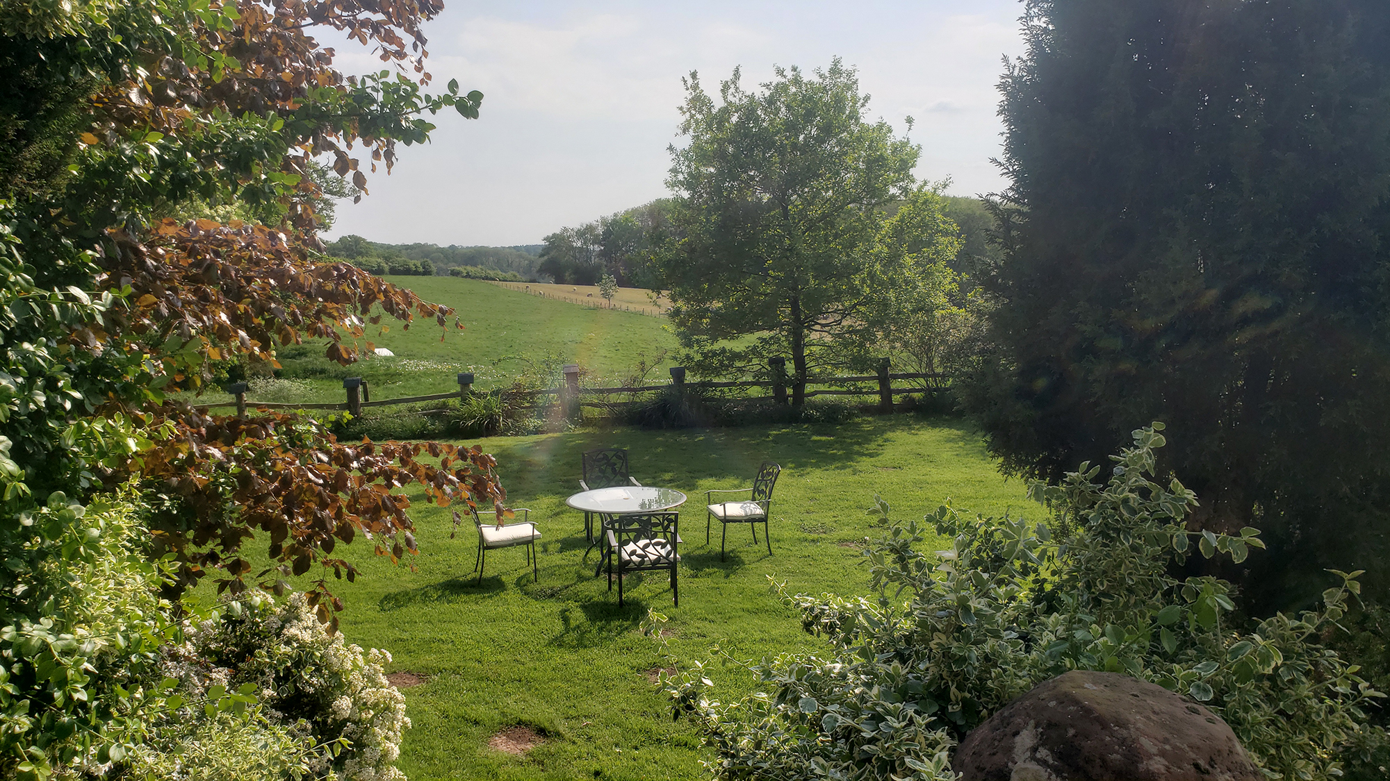 Gooseybank - Views over the garden and hot tub terrace from the kitchen -