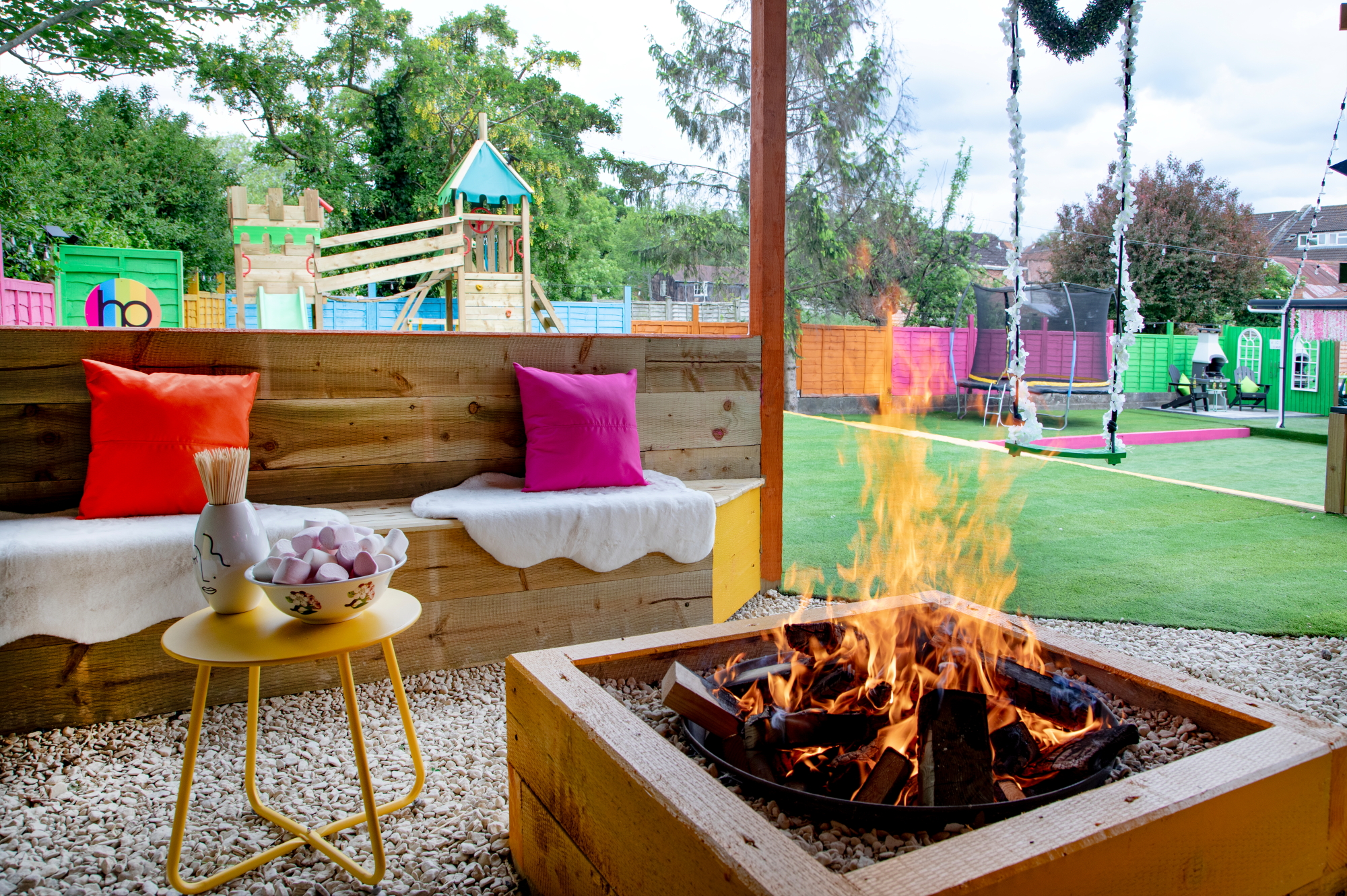 Heavenly Palooza: Chillax outdoors - there's a pool, hot tub, a shack and a play area -