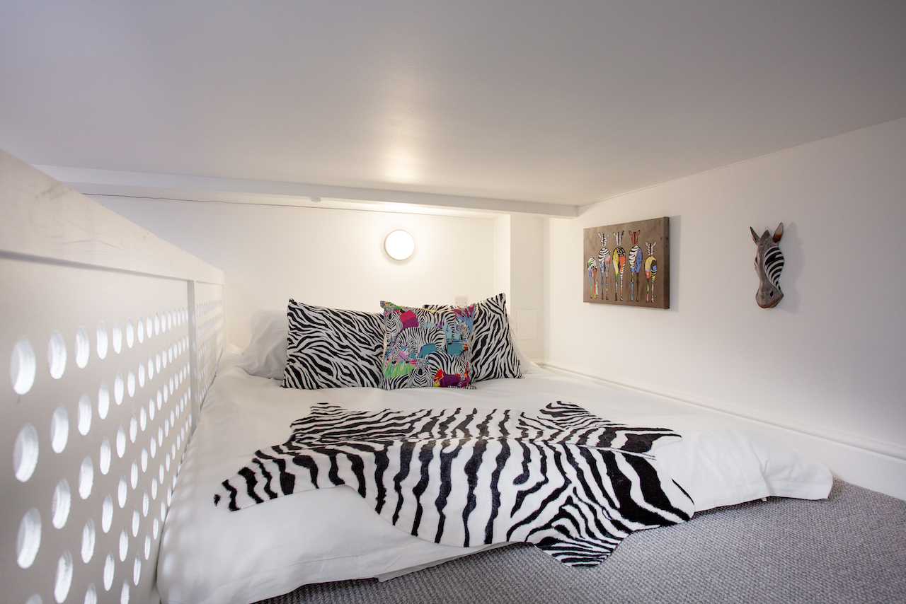 Heavenly Palooza: Zebra Bedroom has 2 super king beds - one on the ground floor and one at loft level -