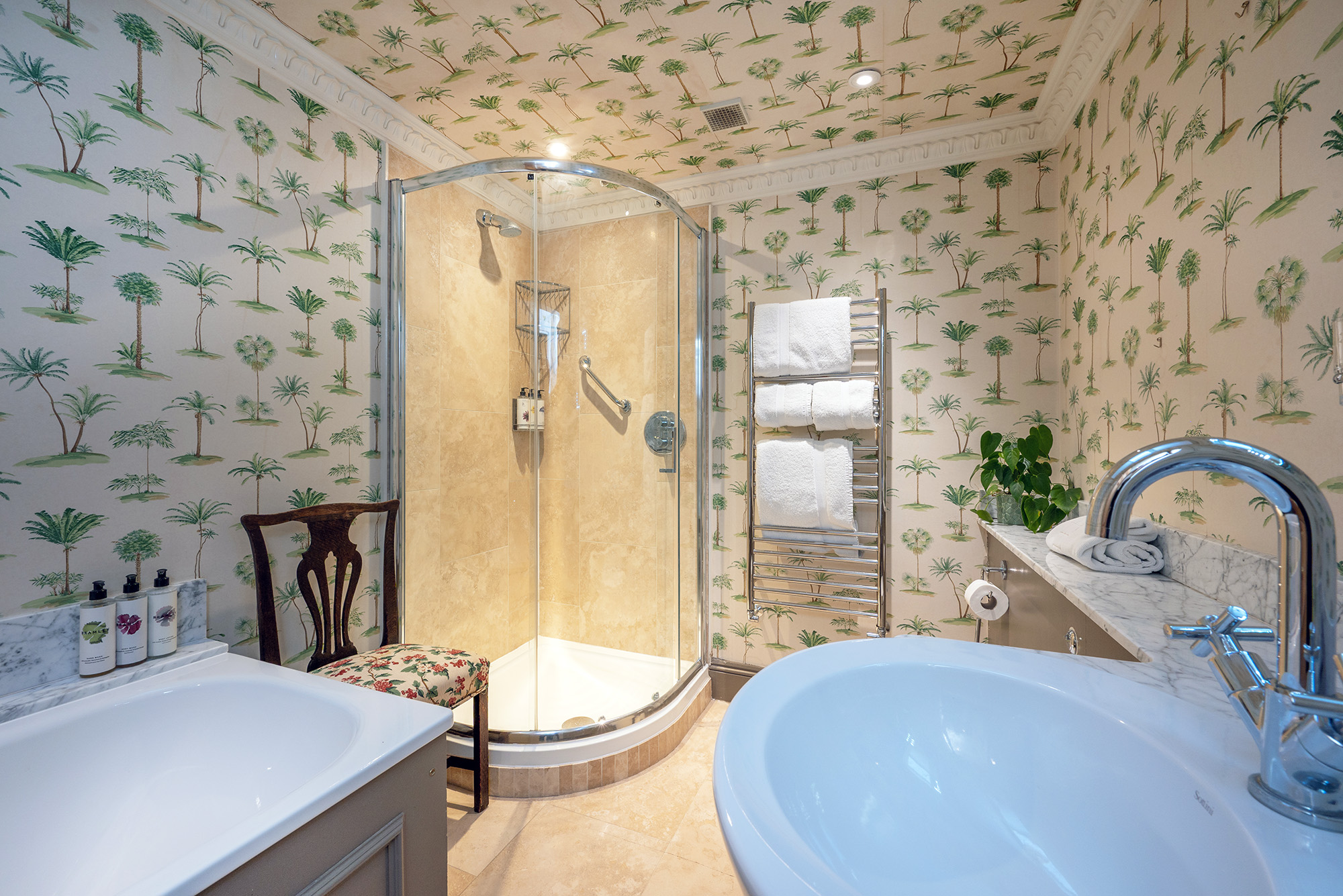 House On The Hill - The ensuite bathroom for Bedroom 2 - love that wallpaper! -