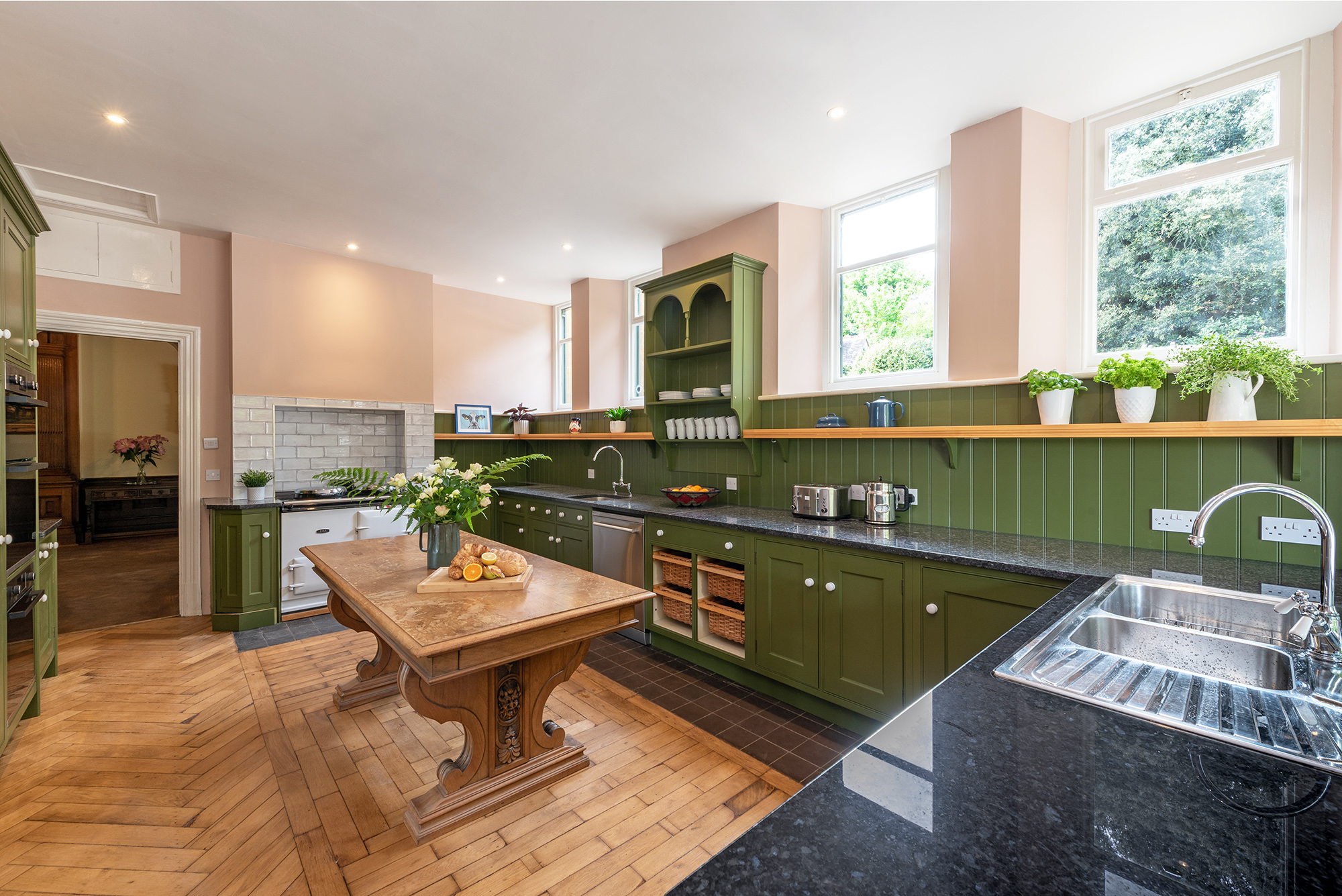 Kennard Hall - The kitchen is country style (NB: Aga no longer in use - there are 2 electric ovens) -