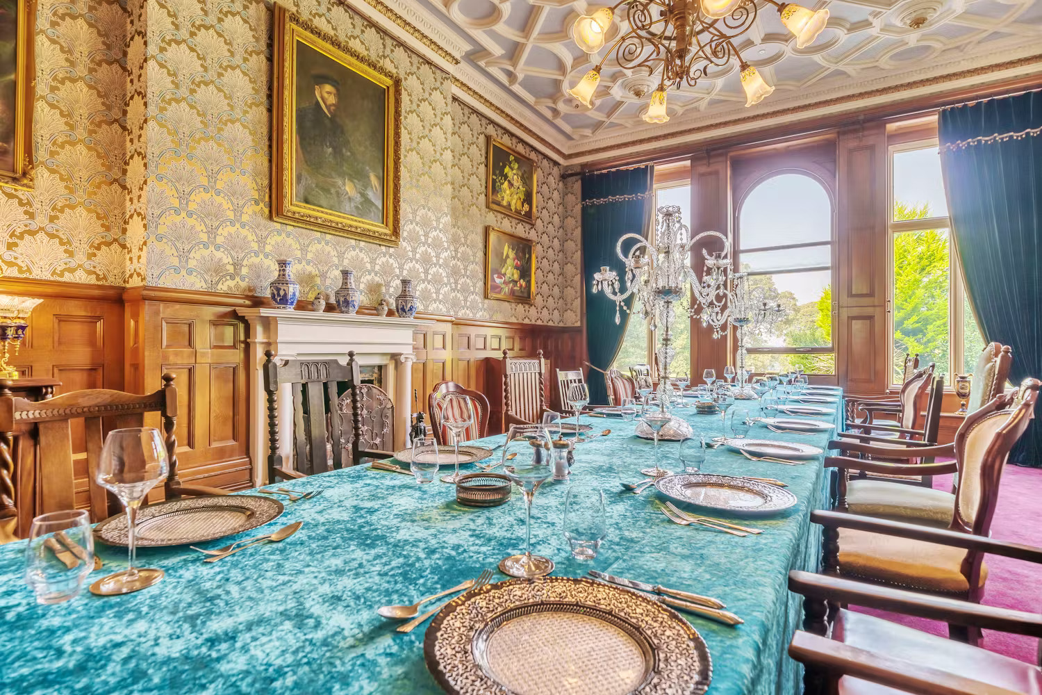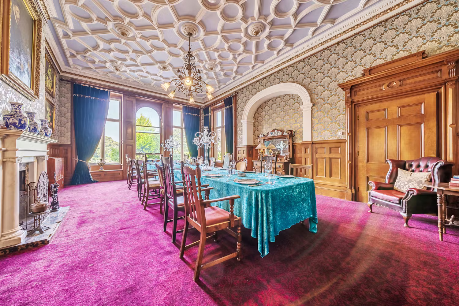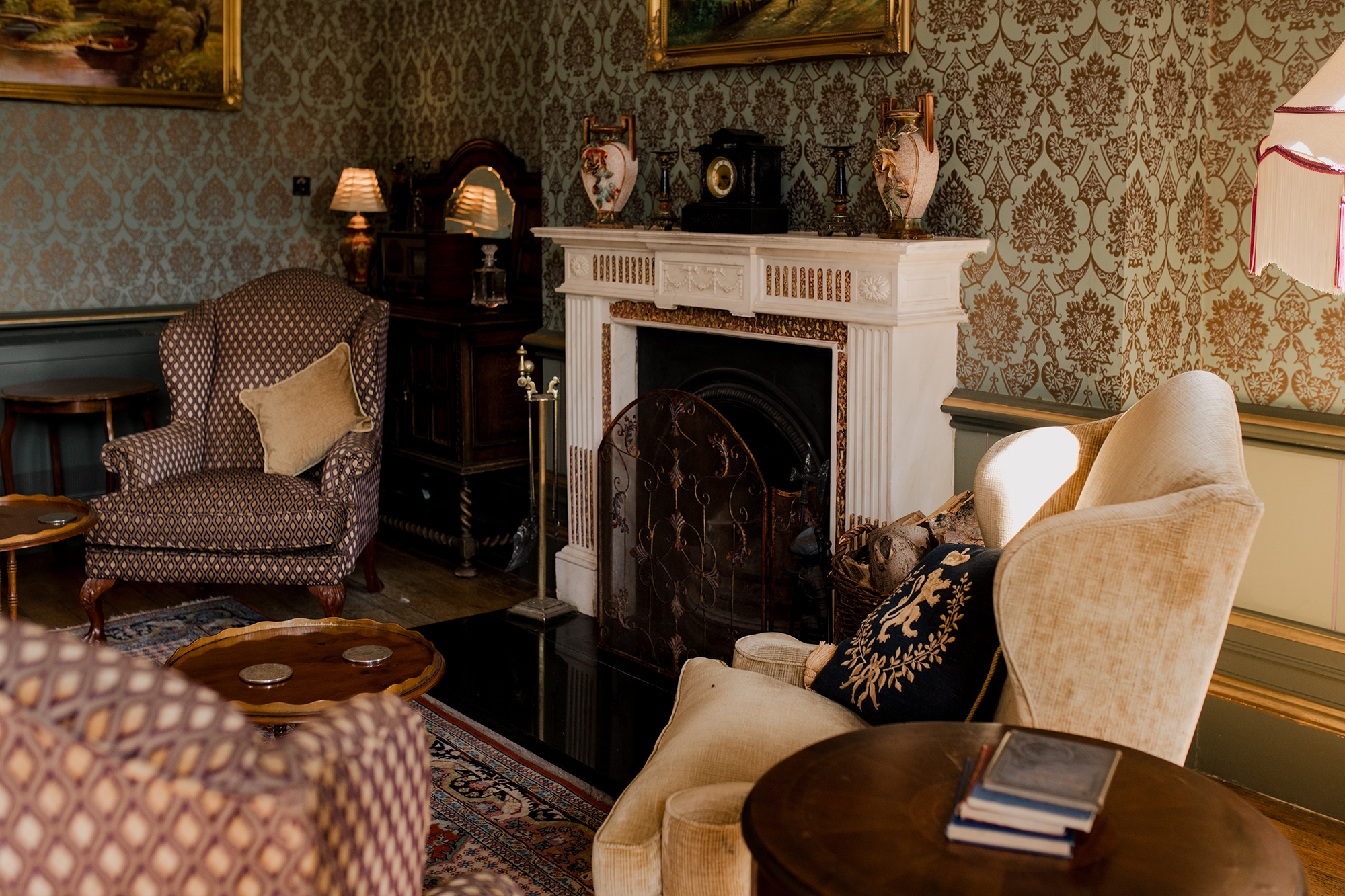 Lady Bawtry - Ornate fireplaces, opulent wallpaper - the Sitting Room -