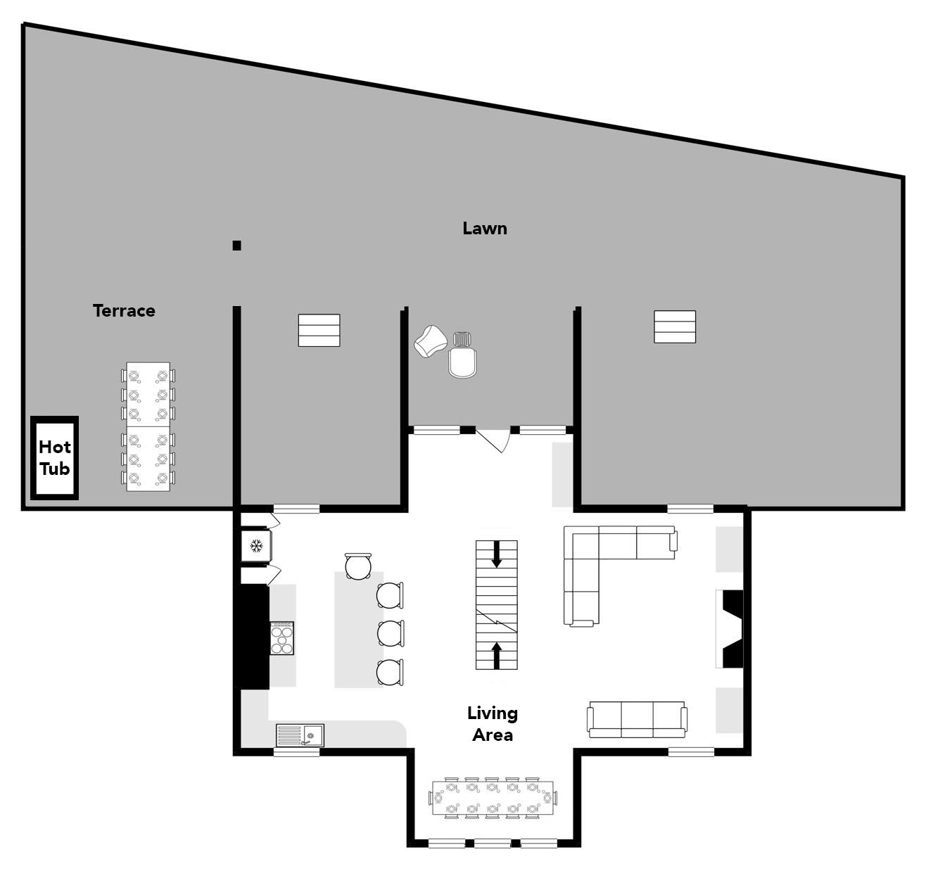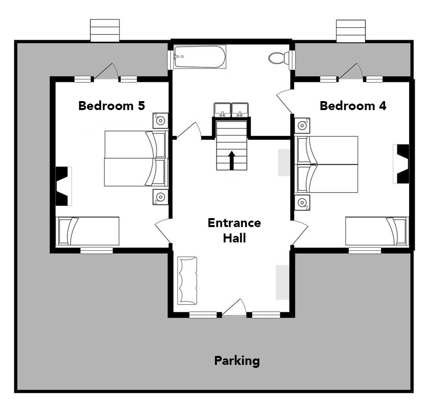 This room is on the ground floor and has zip and link beds (king size or twin) and an optional pull-out guest bed. It has an ensuite bathroom, also accessed from the hallway and shared with Bedroom 5.