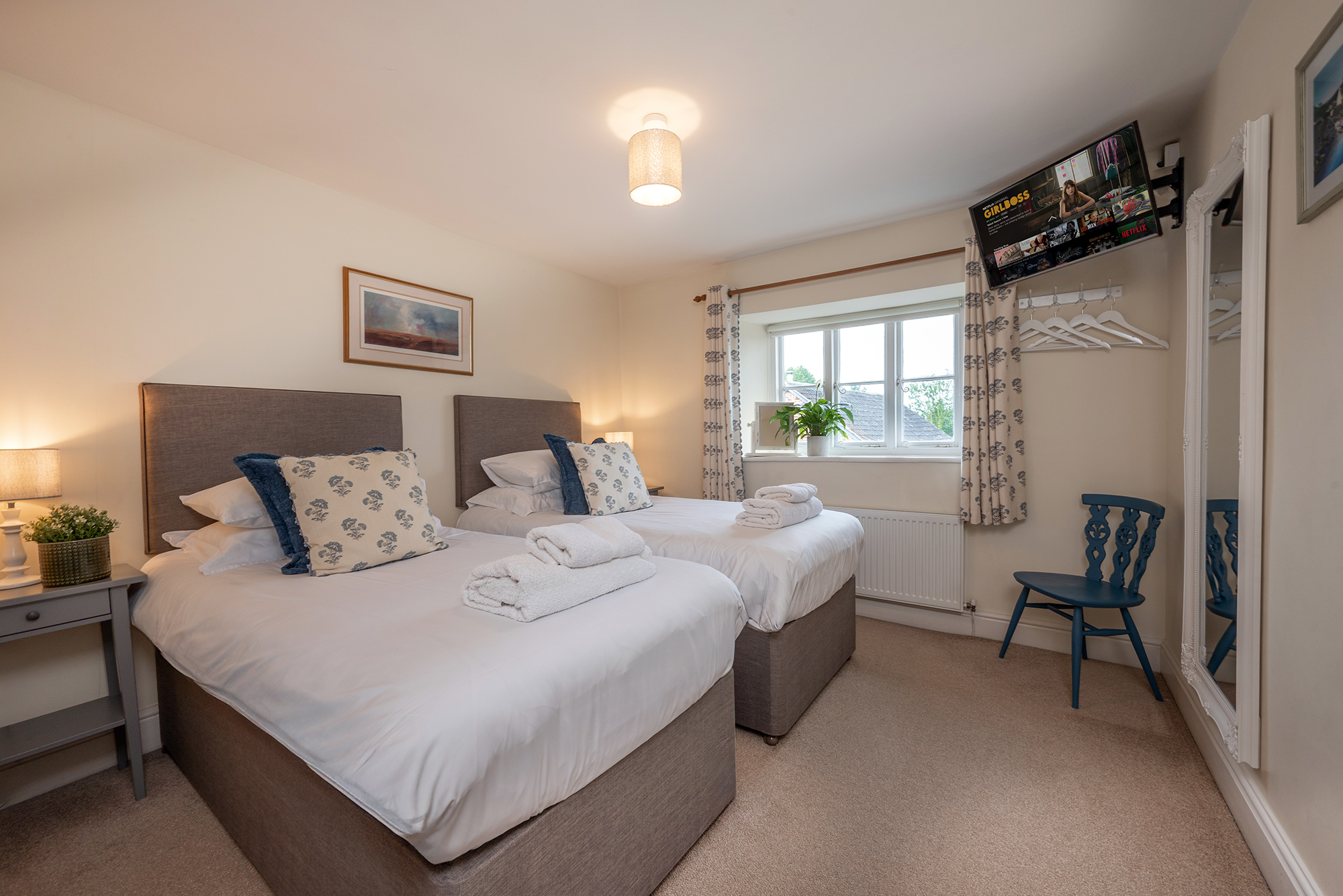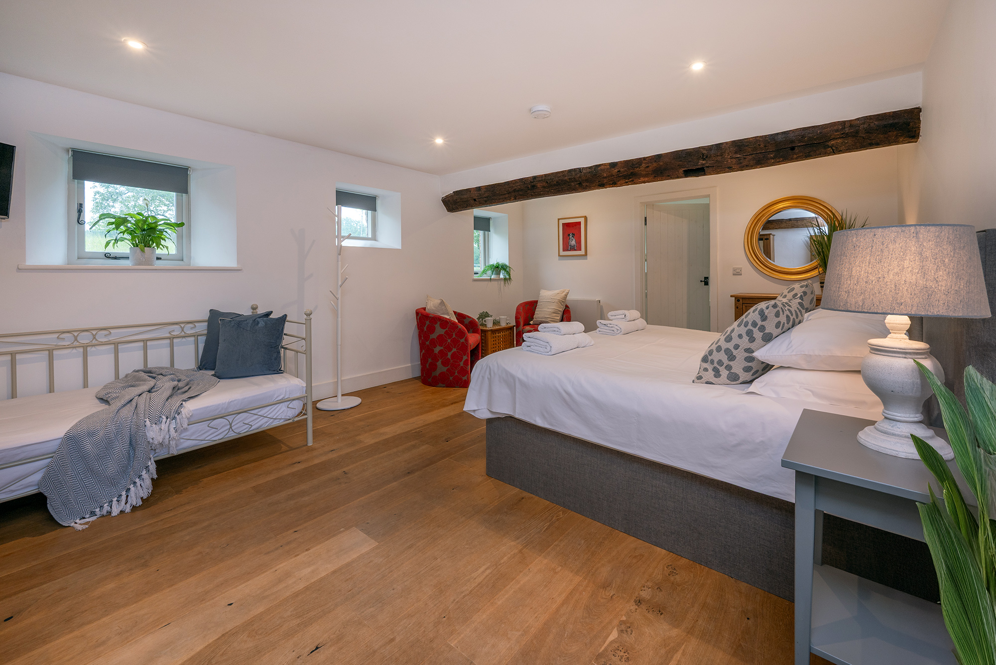 Pound Farm - Bedroom 7: Super king or twin, plus a single bed on request, and an ensuite shower room -