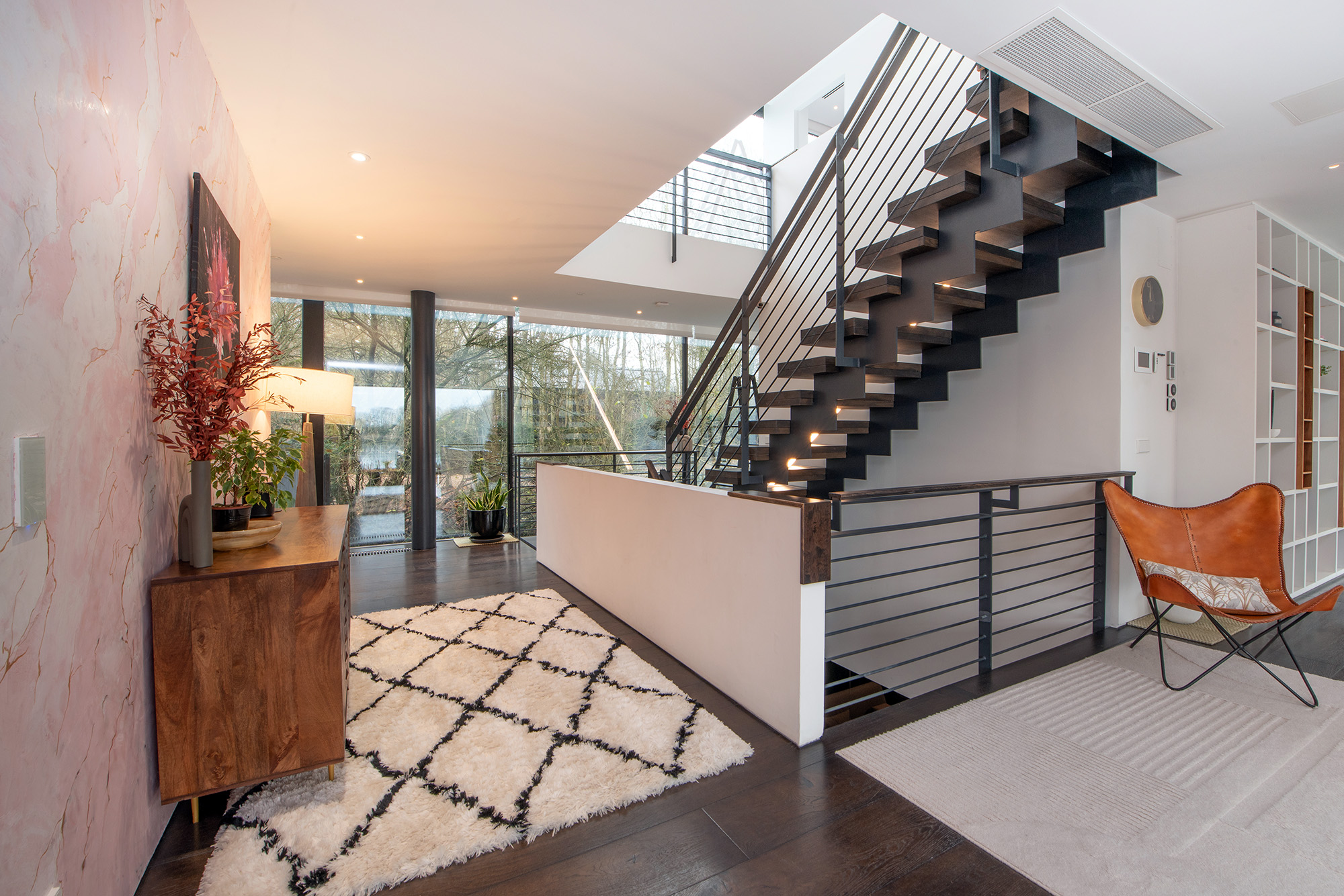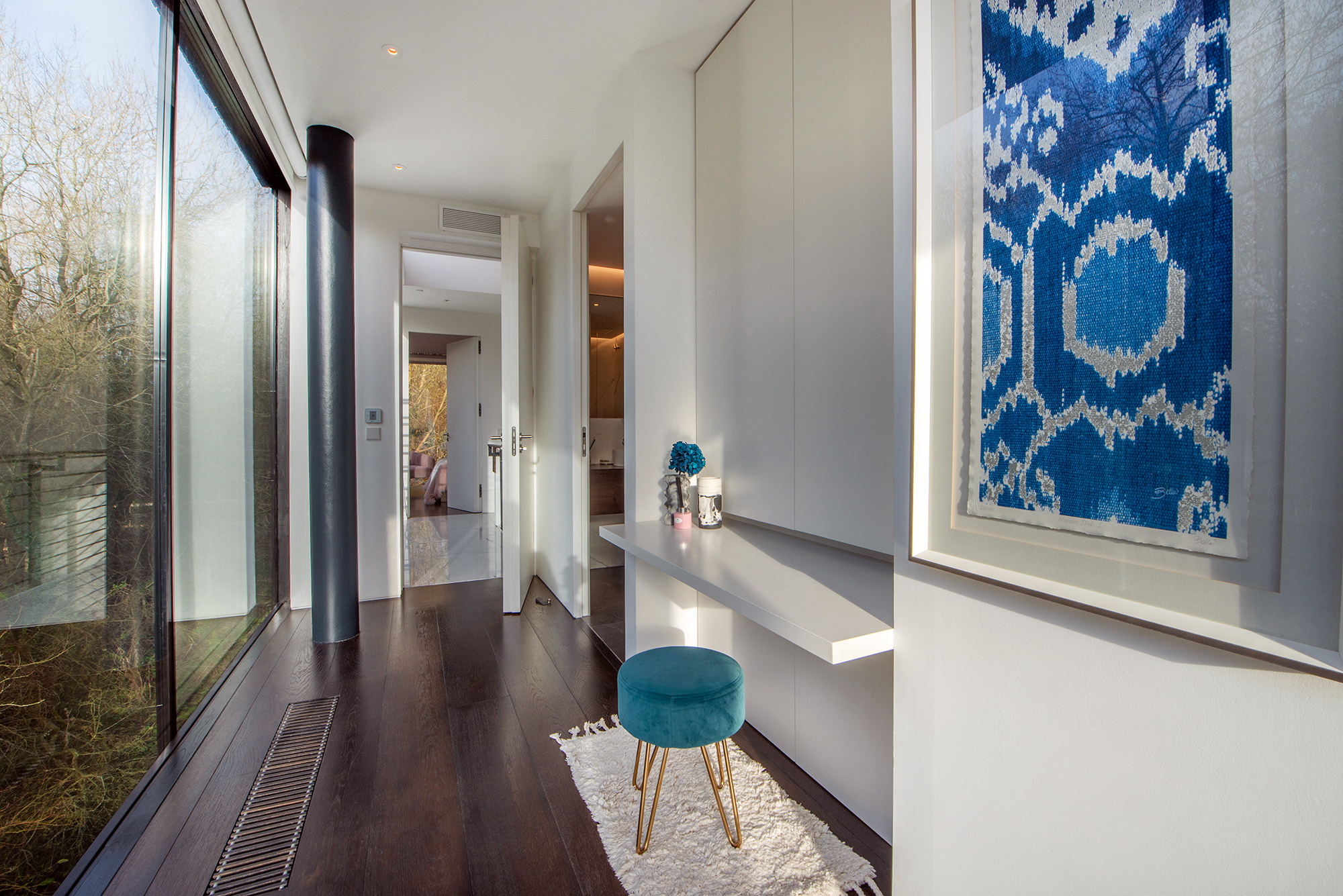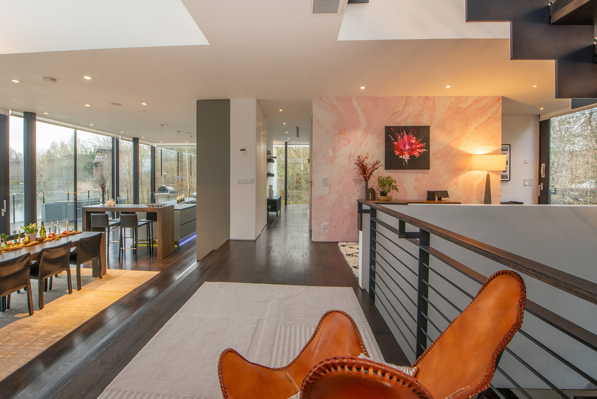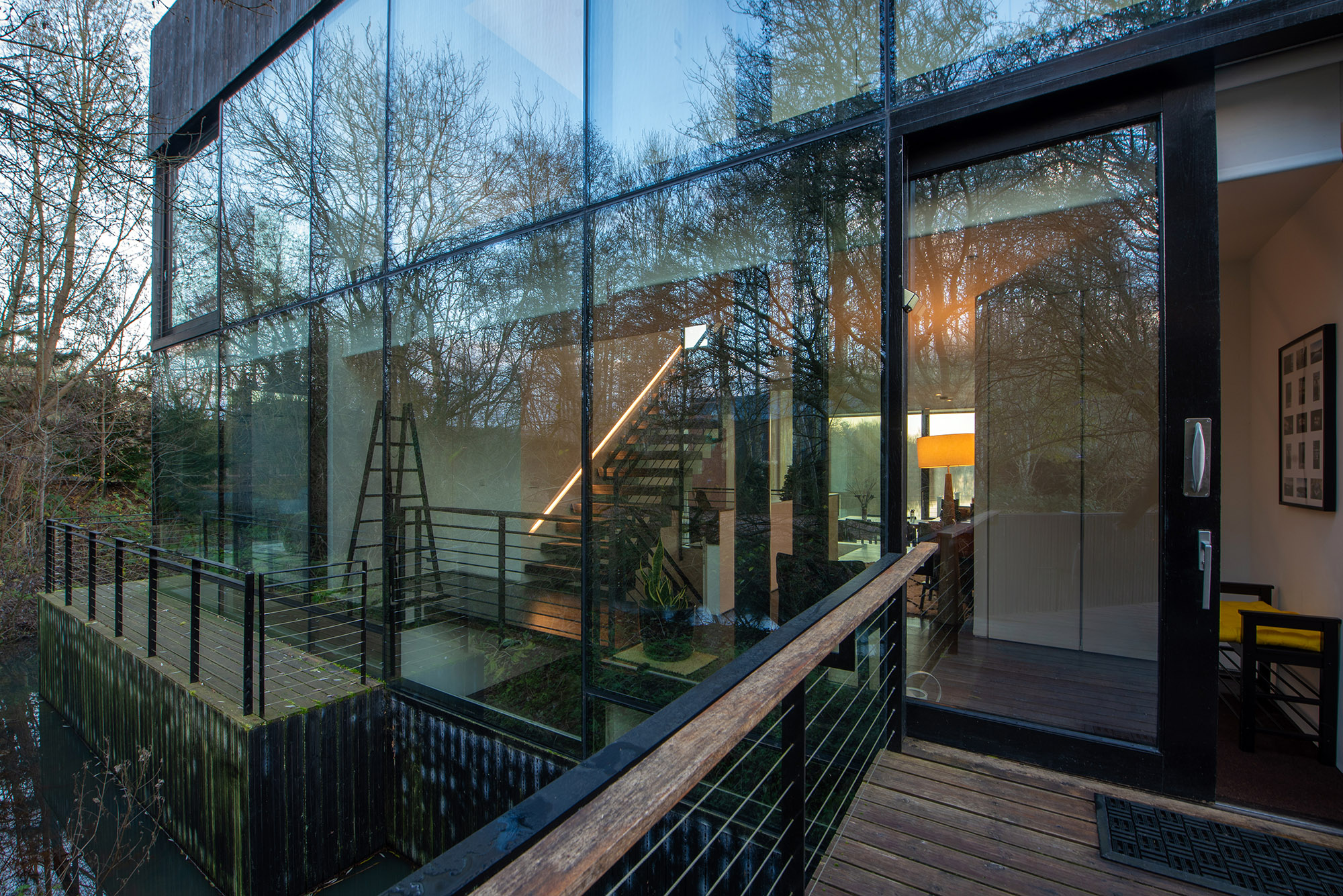 The Glass House - Step inside and the hall links to the dining area and the lake -