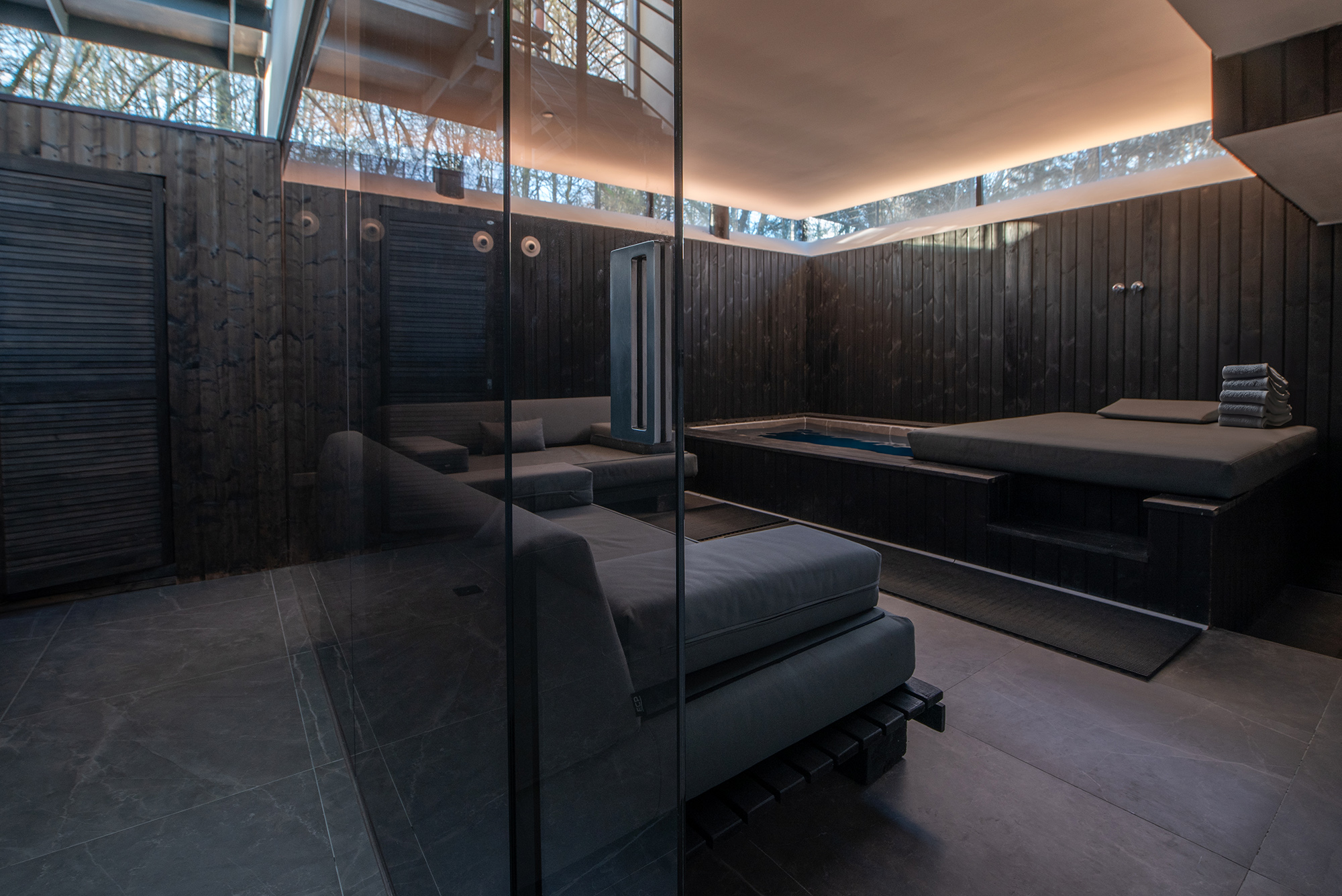 The Glass House: Relax in the Spa Room - there's a hot tub, sauna and chill-out zone -